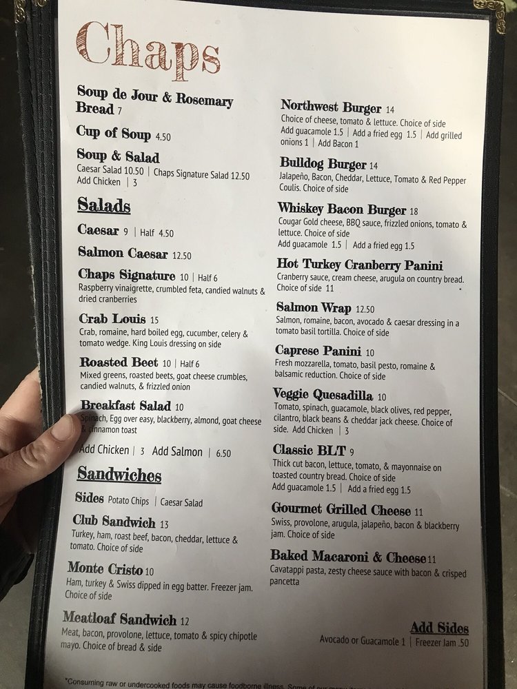 $$ bakeries, breakfast & brunch, american. See 254 unbiased reviews of chaps restaurant, rated 4.0 of 5 on tripadvisor and ranked #52 of 583 restaurants in spokane. View the menu, check prices, find on the map, see photos and ratings.
